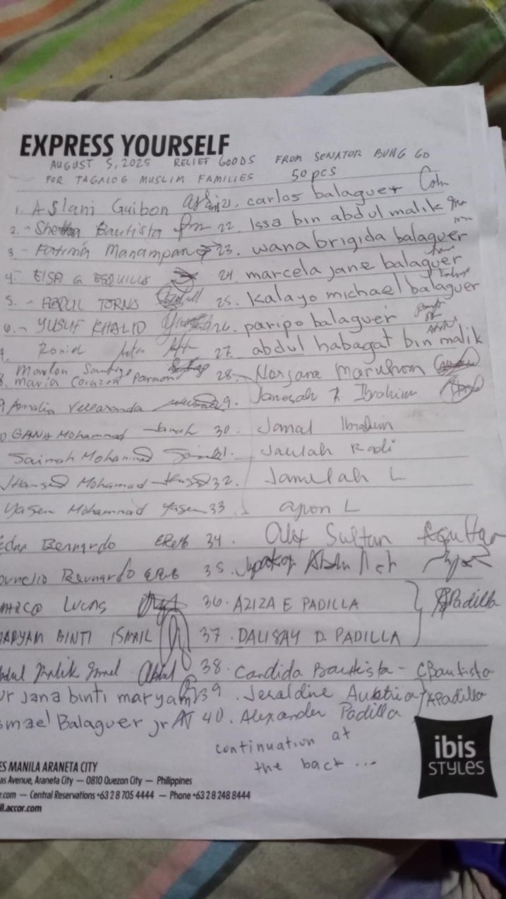 Nagpapasalamat ang 50 katao na magre-representa ng 50 pamilyang Muslim na Tagalog na ang iba ay malimit o talagang hindi nakakakuha ng ayuda lalo na nitong nagdaang pagbaha.